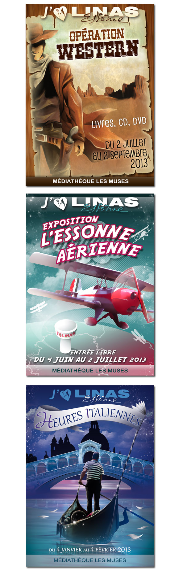 Création d'affiches pour la Médiathèque de Linas.