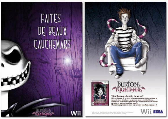 Réalisation de teasing et affiches pour le jeu Wii, univers de Tim Burton.
