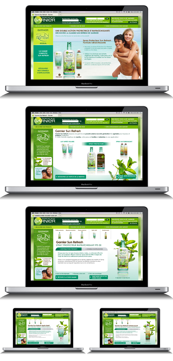 Pages web consacrées à la gamme Sun Refresh sur le site Garnier.fr